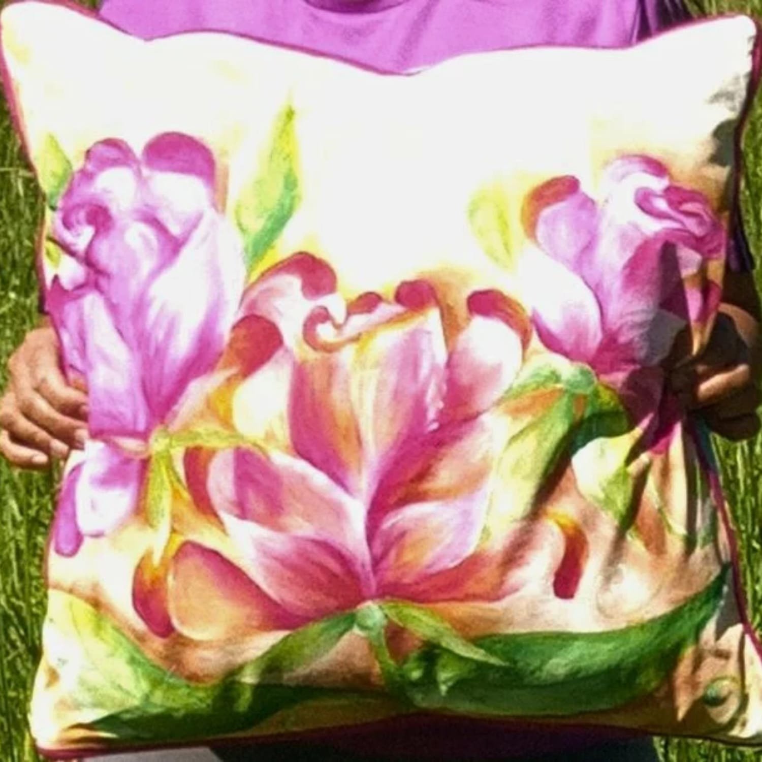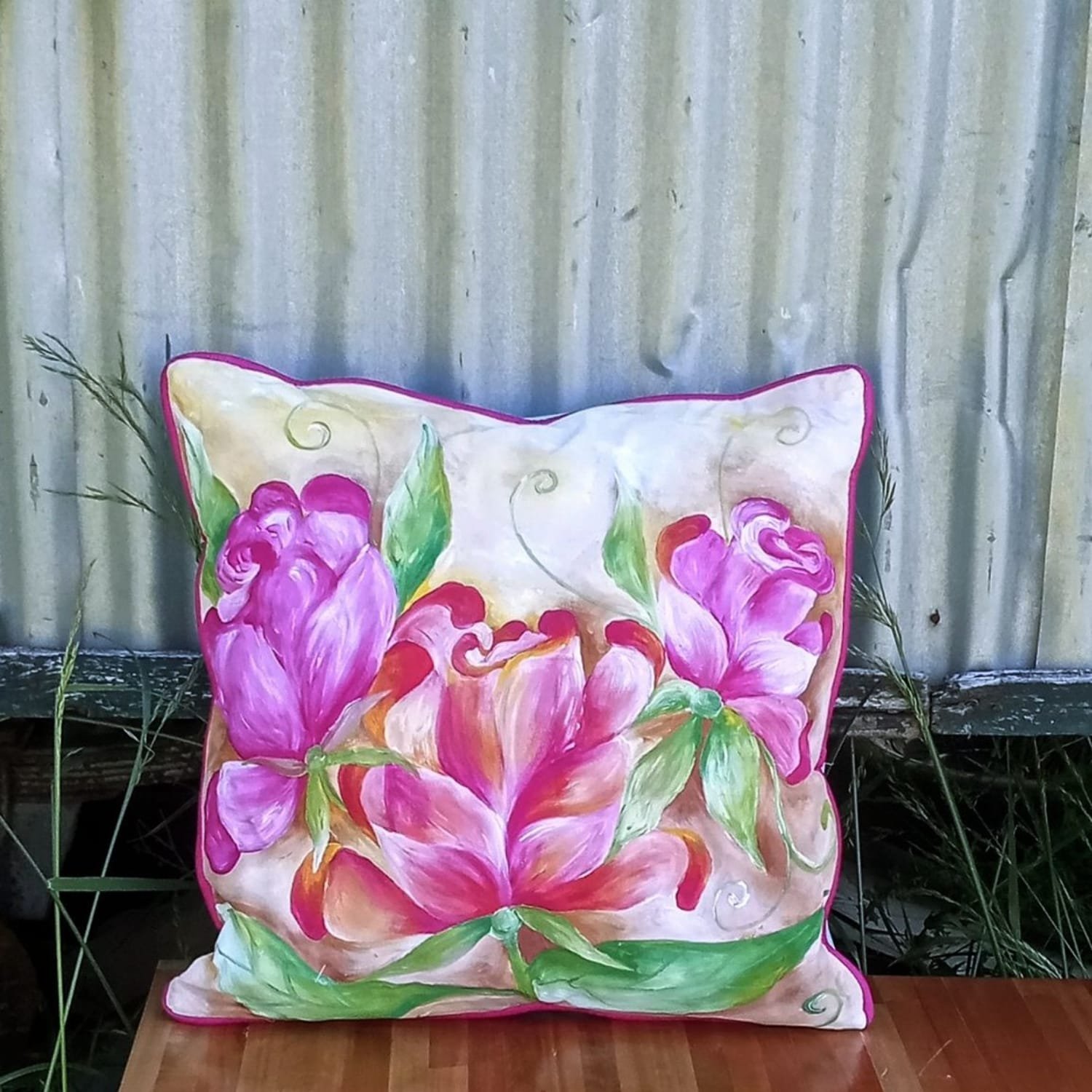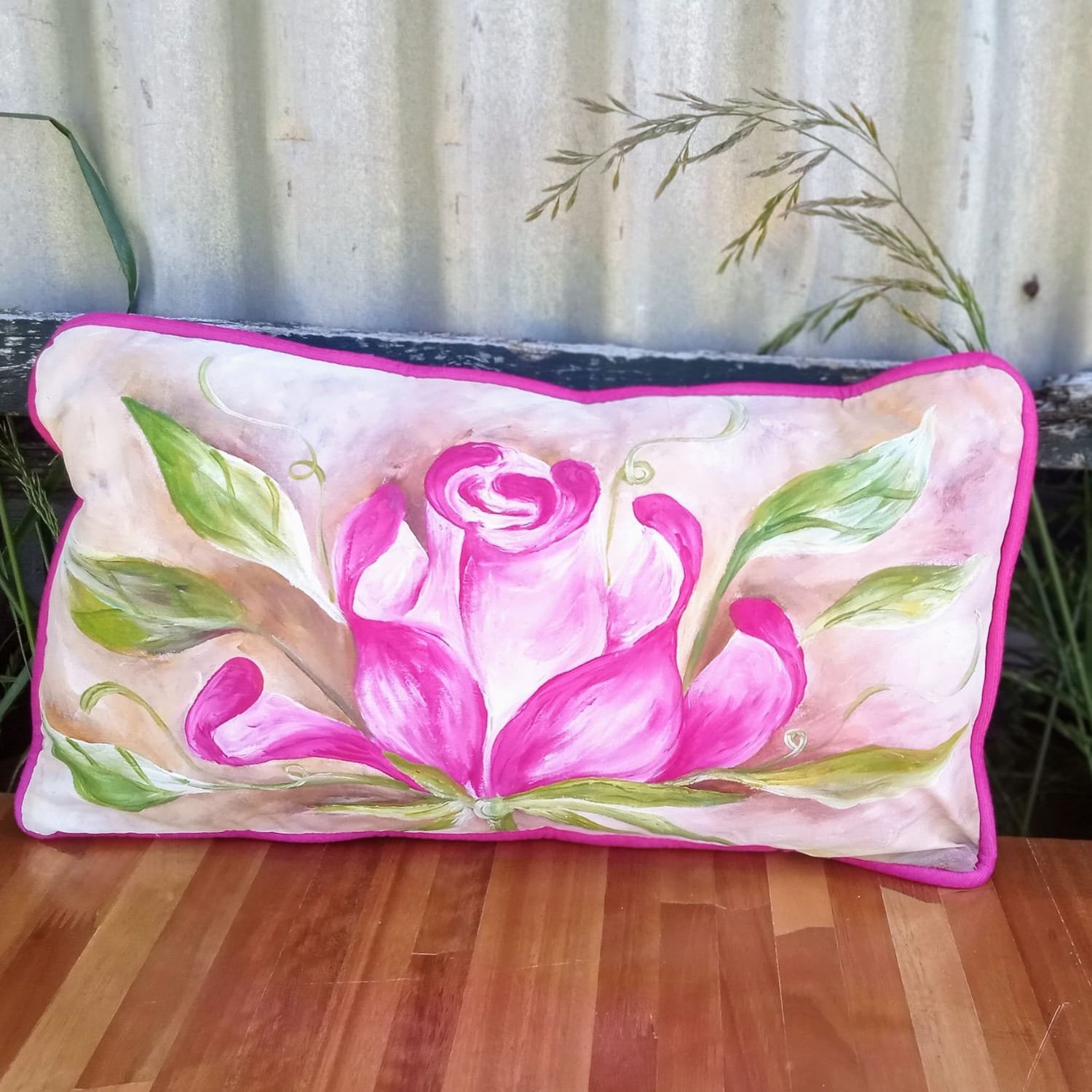 Cada almohadón puede encargarse en combinaciones personalizadas dentro de la gama de rosas, desde tonos mas claros a mas intensos. Al ser piezas pintadas a mano, cada dise#o se adapta a la intención, energía o estilo que cada persona busque evocar.
