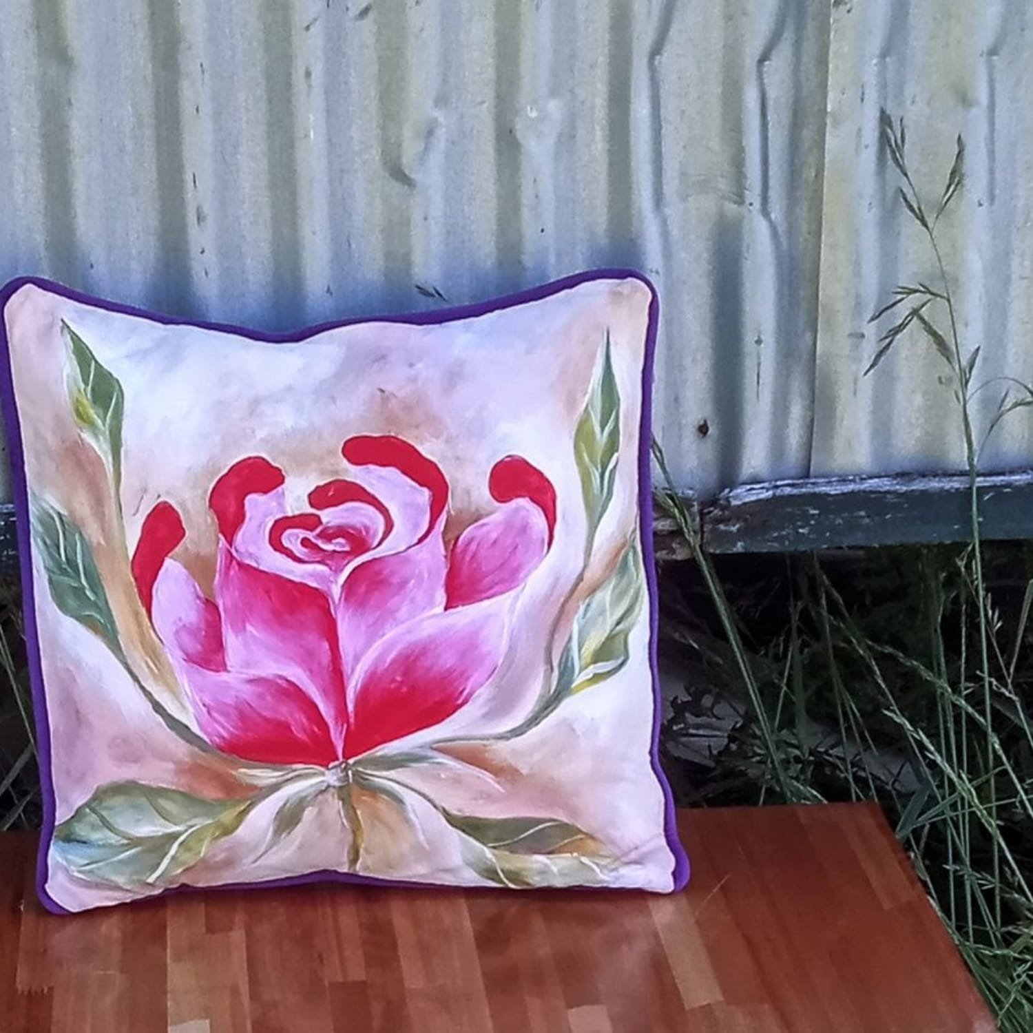 Cada almohadón puede encargarse en una combinación de rojos única y personalizada. Al ser piezas pintadas a mano, se adaptan a la intención, energía o estilo que cada persona quiera sumar a su espacio u hogar.