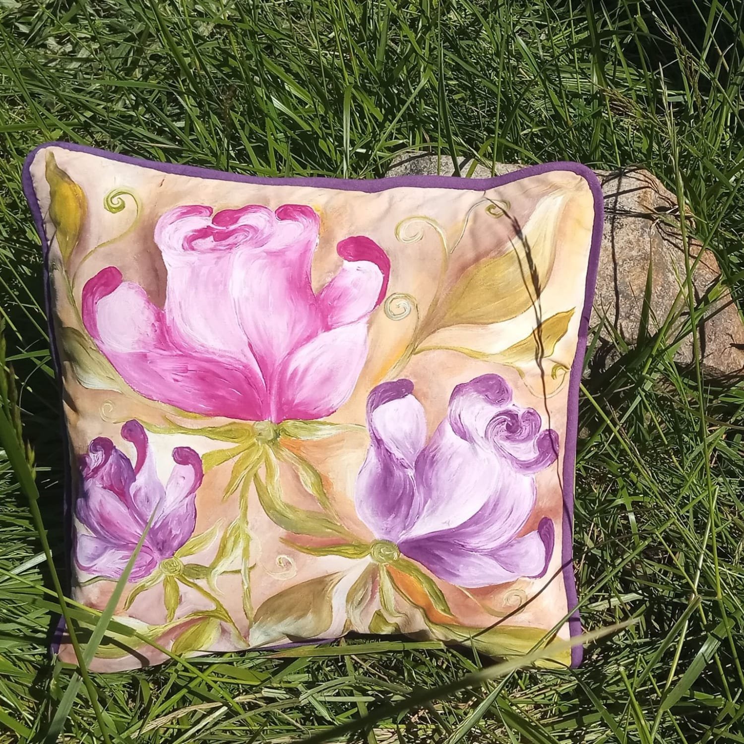 Cada almohadón puede encargarse en una combinación de colores única y personalizada. Al ser piezas pintadas a mano, se adaptan a la intención, energía o estilo que cada persona quiera sumar a su espacio u hogar.